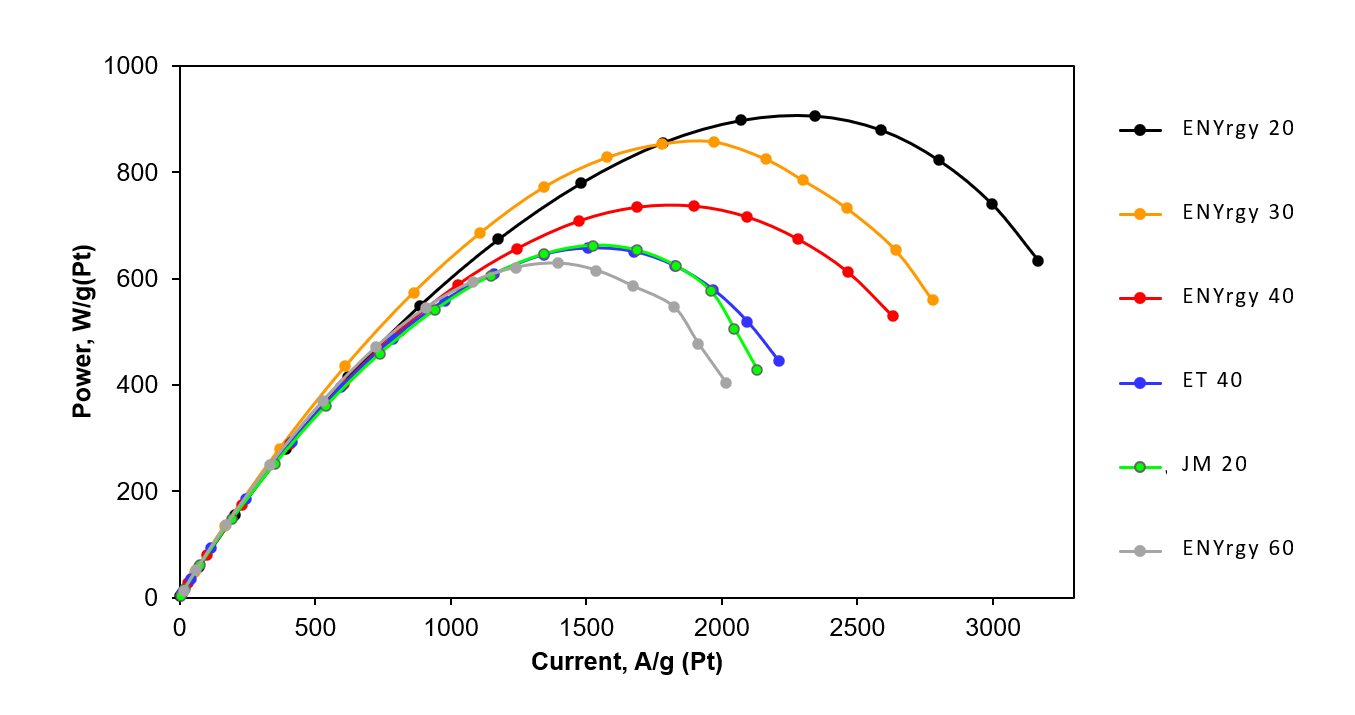 The use of ENYrgy Pt/C in PEM FC can increase system efficiency up to 70% and energy up to 1 kW/kg.